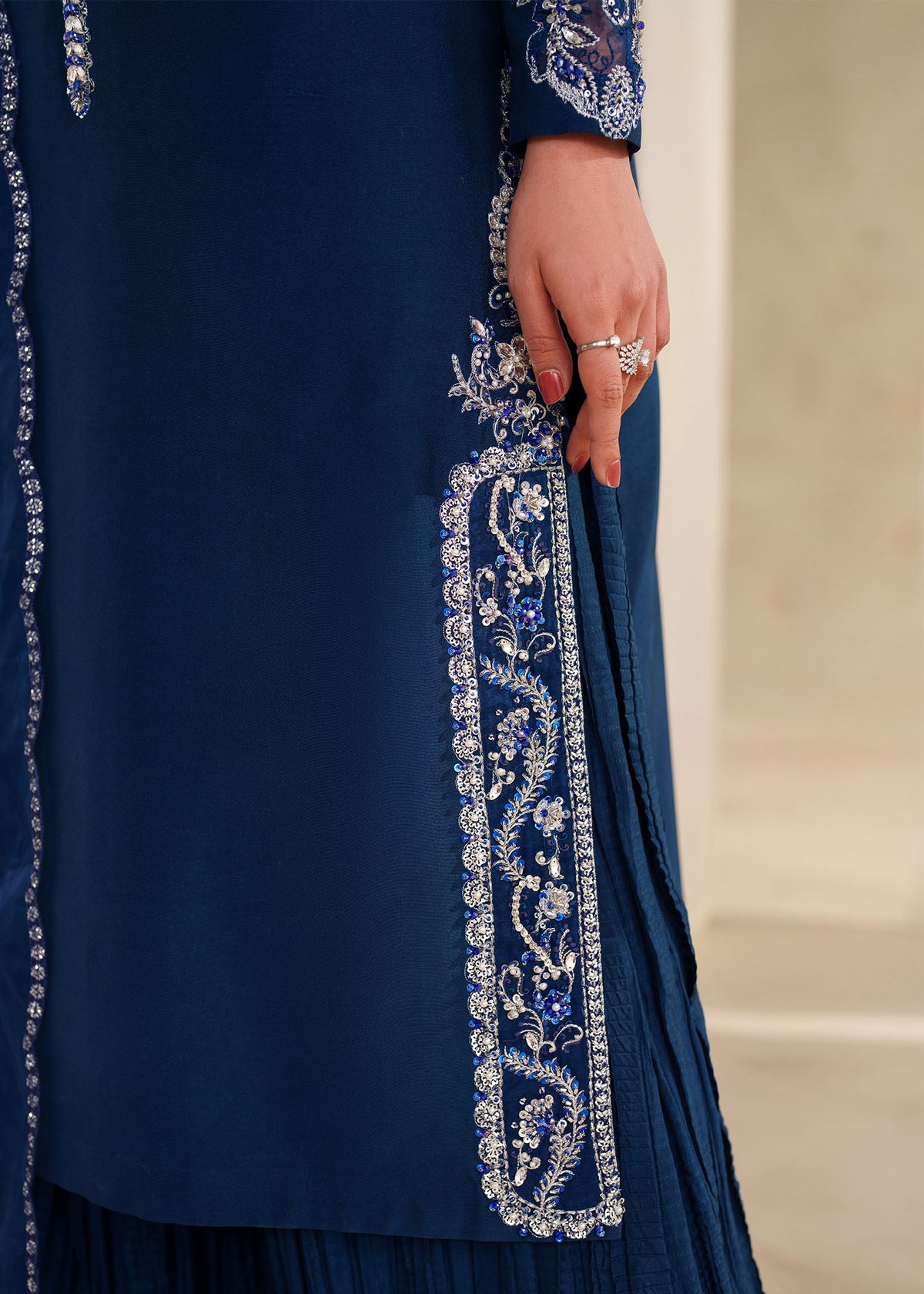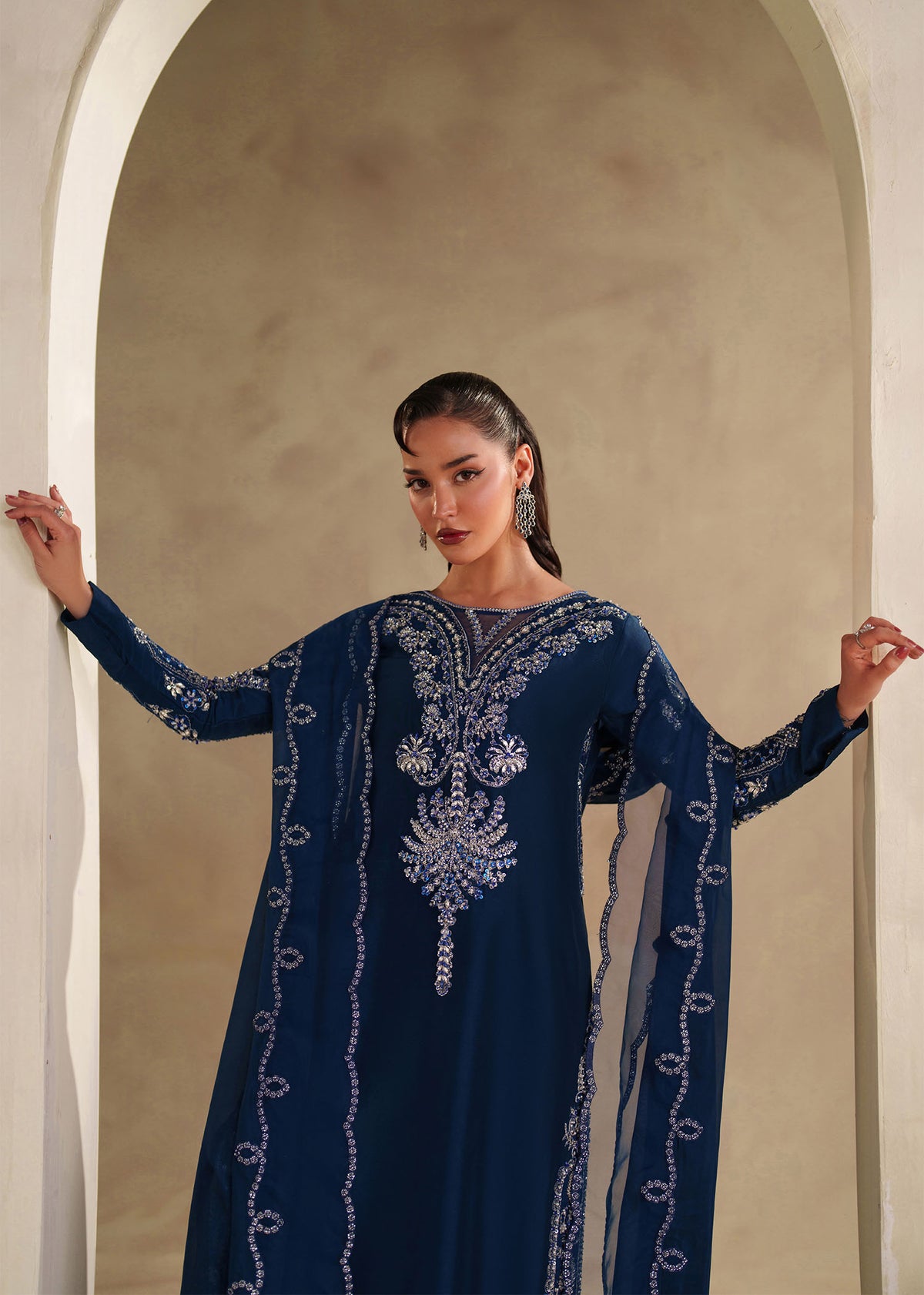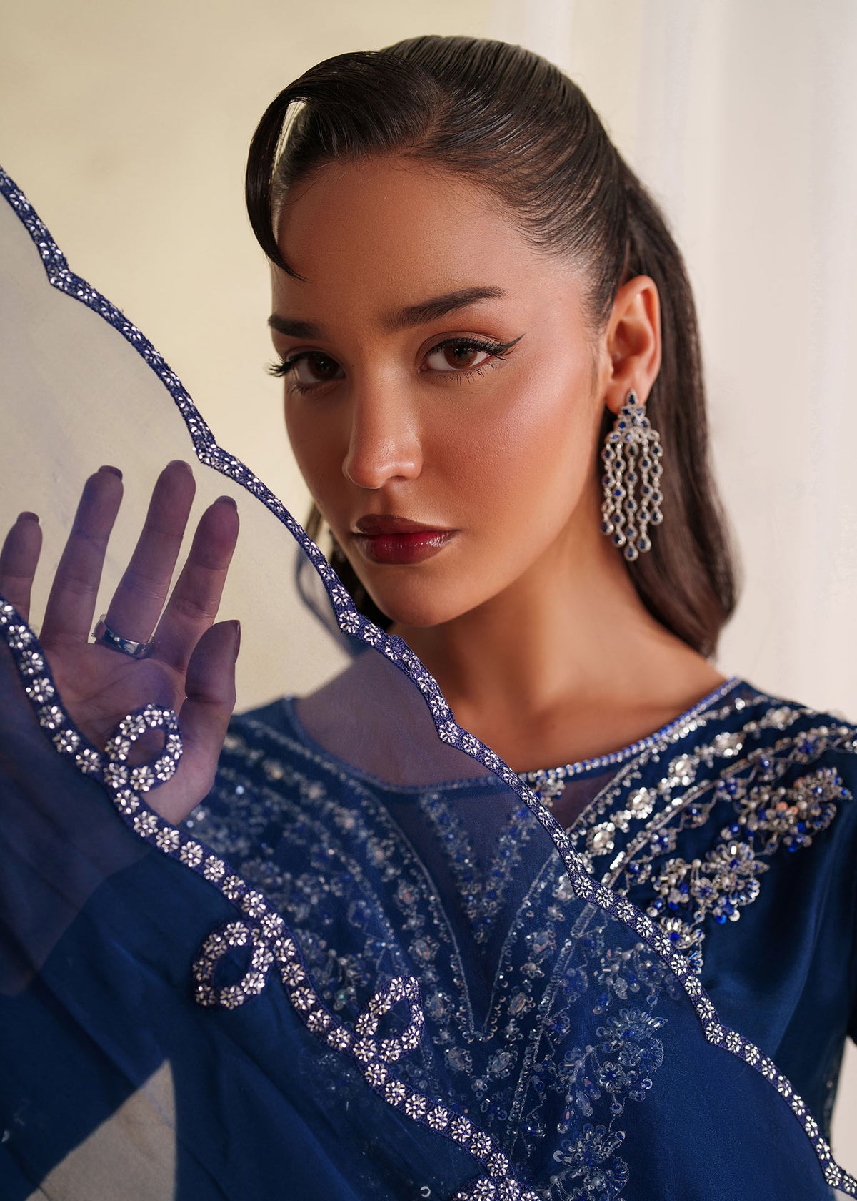 Midnight Azure brings a festive calm to this Maahi II reveal rich, luminous, and full of feeling. The fluid tissue silk shirt, finished with subtle blue accents and soft white pearls, flows effortlessly into crushed pants that move with you. Easy, expressive, and thoughtfully crafted, this one holds a special place with us quietly festive, effortlessly elegant, and honestly one of our favourites!