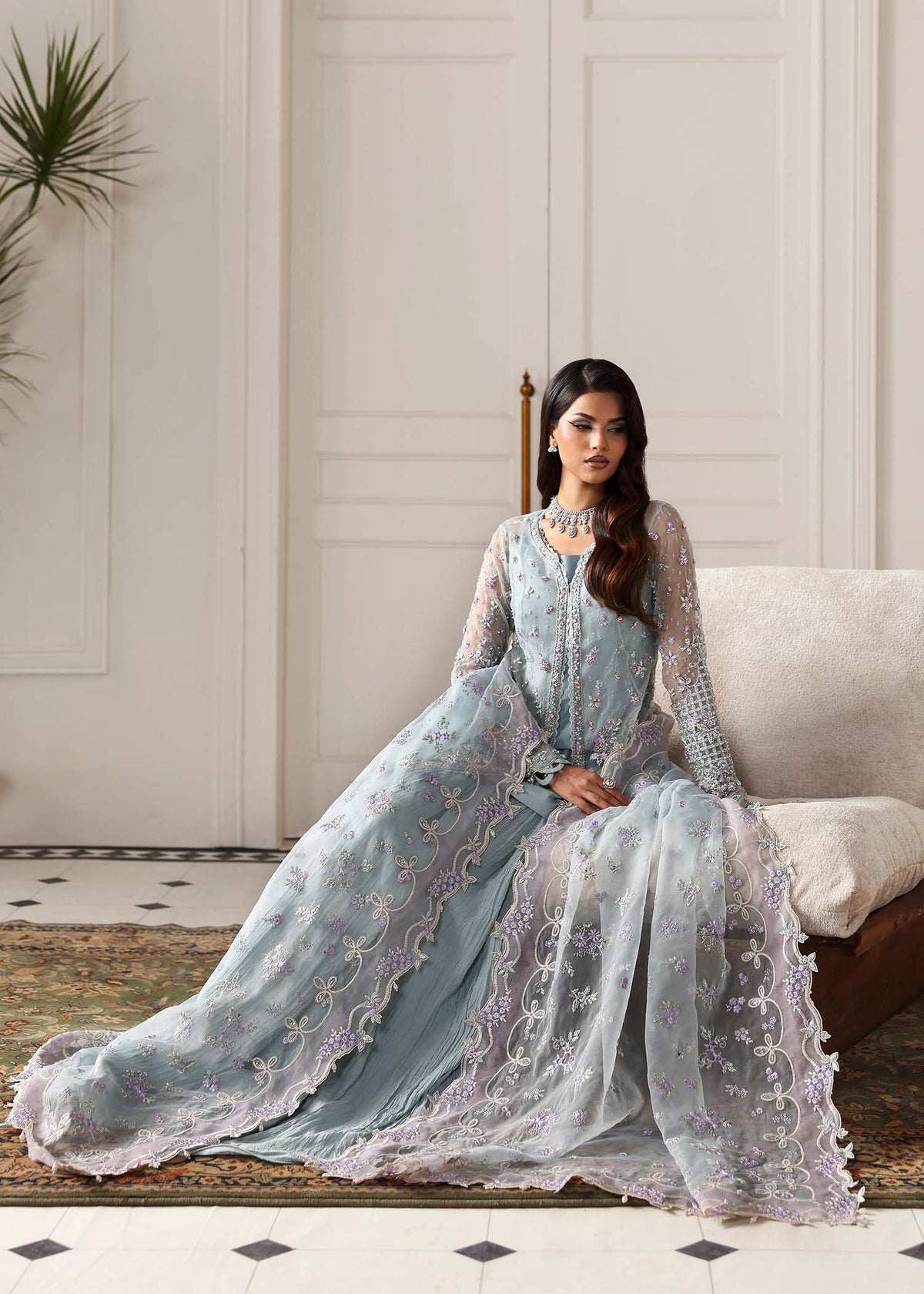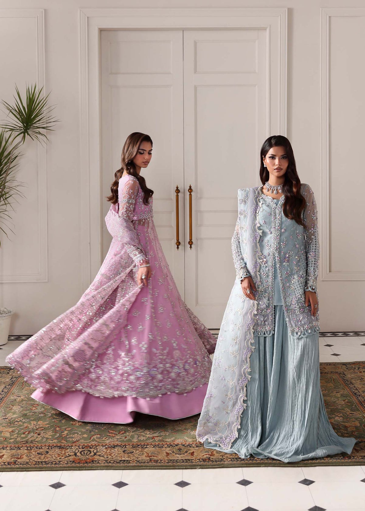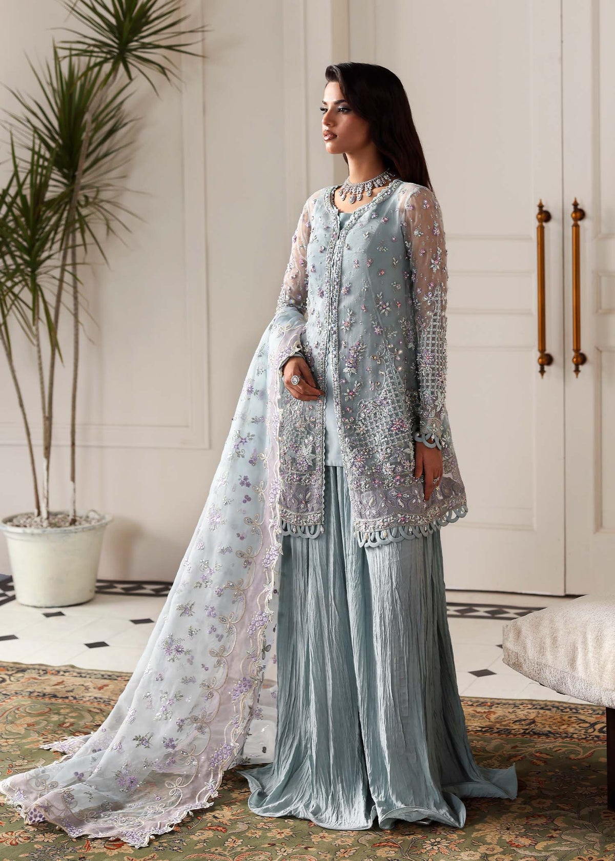 Eisley is our answer to the call for something truly different , a piece that doesn’t just follow trends but creates its own moment. Drenched in Celestial Blue, a shade we dreamt into life, this outfit is soft yet striking, delicate yet bold designed to stand apart in a world of sameness. At its heart is a modern peplum silhouette, adorned with intricate embellishments that catch the light with quiet brilliance, paired effortlessly with crushed pants that add texture, ease, and flow. Every stitch, every shimmer has been crafted with celebration in mind — thoughtful, graceful, and full of soul. Eisley is more than fashion; it’s expression — a look that speaks before you do. Available in stitched and unstitched options, but with only limited pieces released, this is one you’ll want to claim before it’s gone for good.